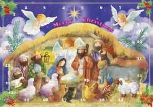窓を開くと聖書に沿った降誕ストーリーのイラストがみことばとともに描かれています。